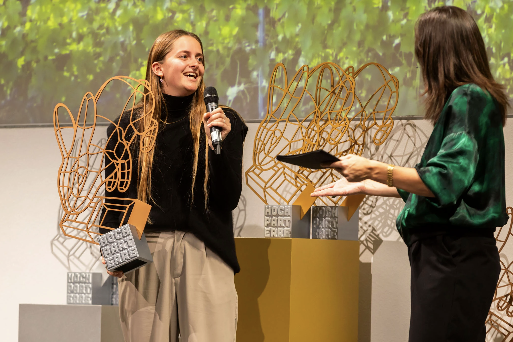Sur la scène du Museum für Gestaltung, il n'y avait pas seulement de nombreux francophones lors de la remise des prix des 'Meilleurs 2024', mais aussi un nombre remarquablement élevé de jeunes. Il est donc bien possible que les lièvres se multiplient bientôt en Suisse romande. Hochparterre les félicite et se réjouit de la relève !